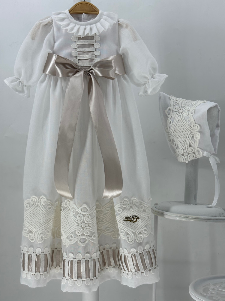 طقم نرمين المكون من ثلاث قطع روب البيبي المزين بالون غبار الورد مع اكمام وقبعة وكوفلة