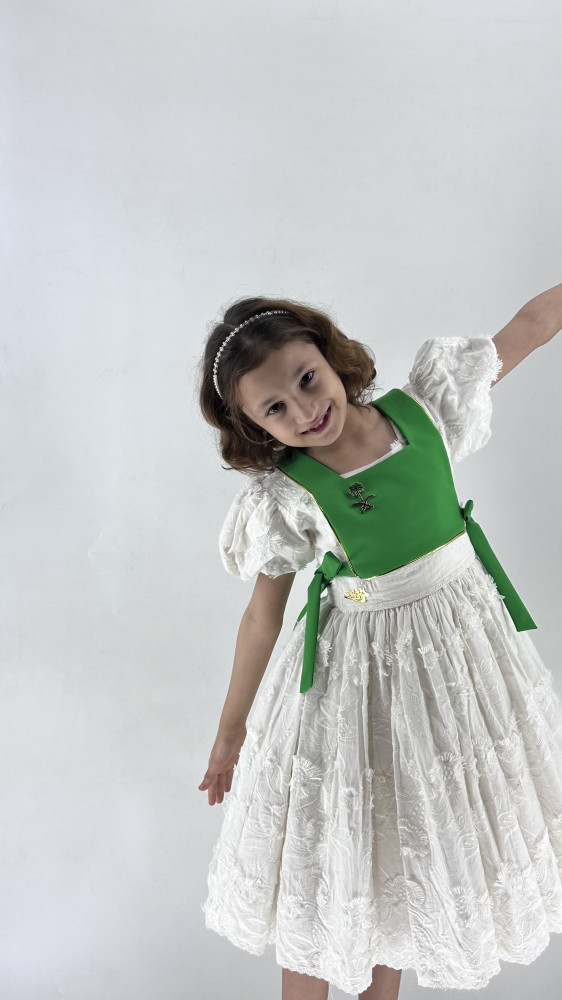 سديرية اليوم الوطني اخضر للبنات بشغل يدوي بالخرز قماش احتفلي مع طفلتك بأجمل اطلالة لليوم الوطني يمكن لبسه فوق اللبس المدرسي(المريول) وقميص ابيض او فستان ابيض