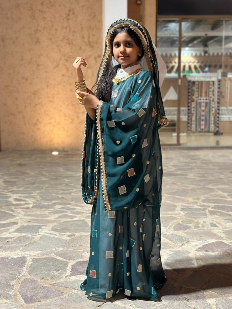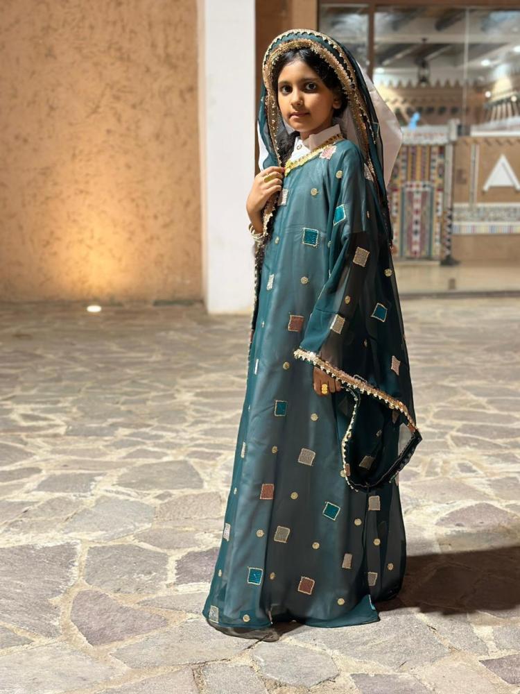 المسدح اللون اخضر غامق مع الطرحة والنفخة 4 قطع
