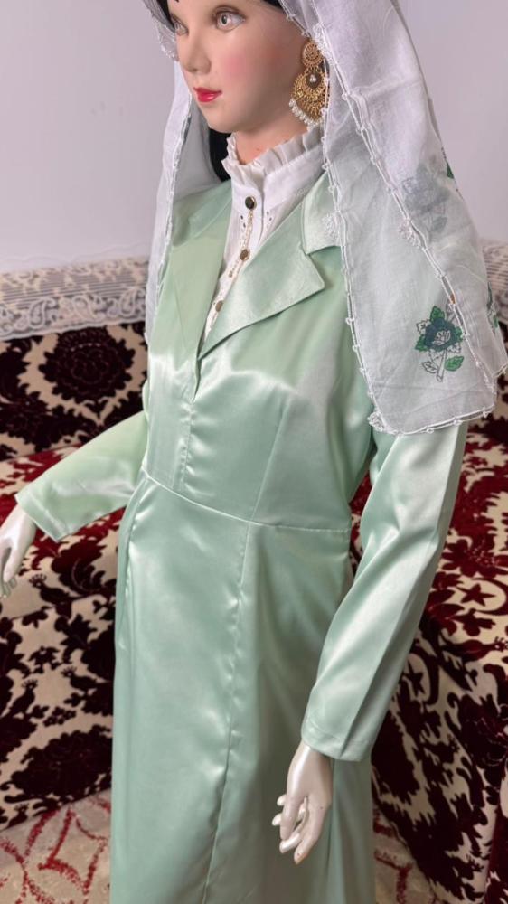 البرنسيس اللون التفاحي مع محرمة ومدورة ونصف سديرية