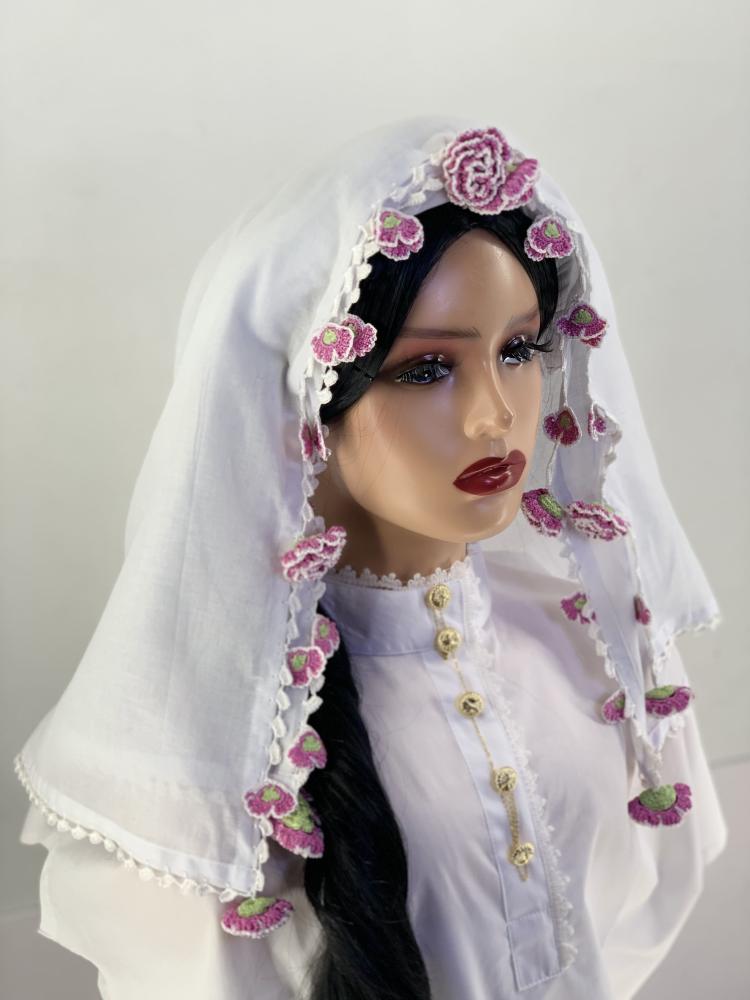 محرمة ومدورة حجازية بأطراف كروشيه وردات بناتي