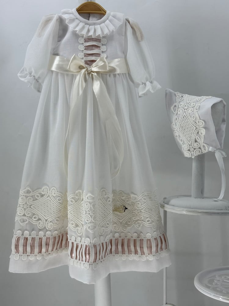 طقم شيرين المكون من ثلاث قطع روب البيبي المزين بالون الوردي مع اكمام وقبعة وكوفلة مناسب لحفلات استقبال طفلك ولحفلات الرحماني