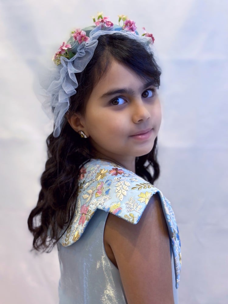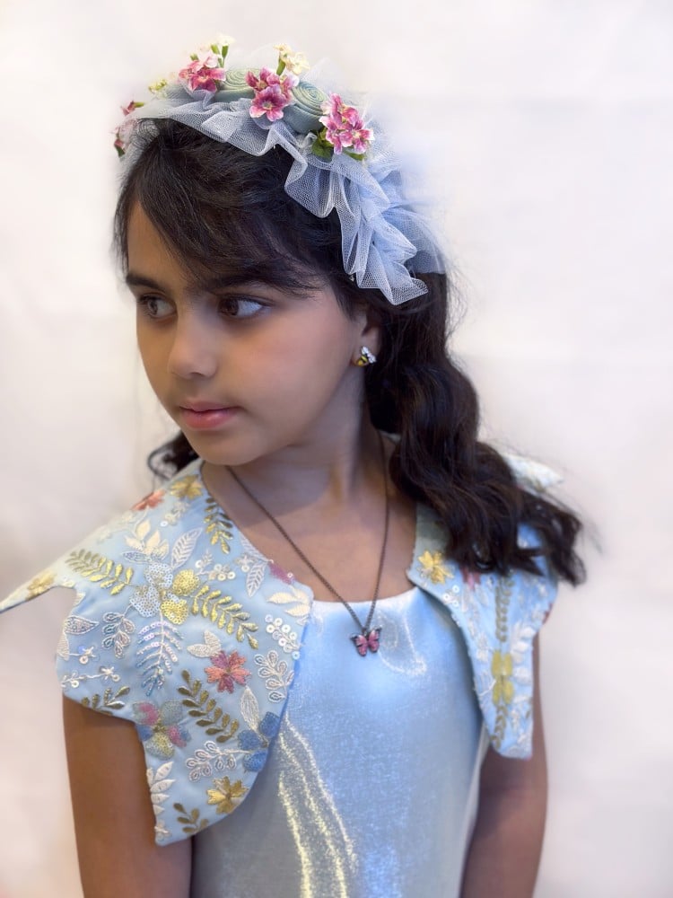 كرته حجازية اللون أزرق مع نصف سديرية ومحرمة ومدورة 4 قطع