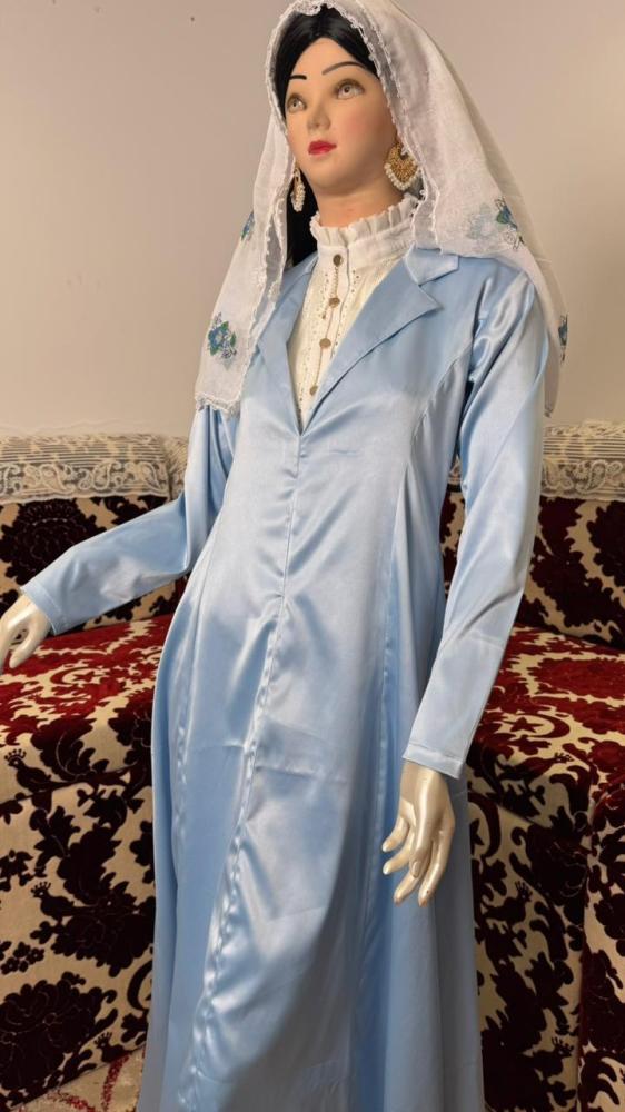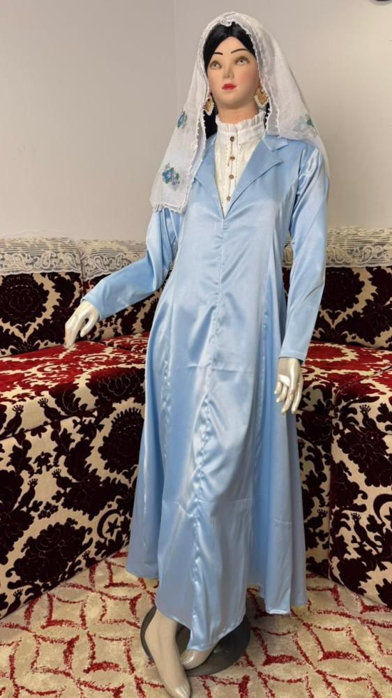 البرنسيس اللون الازرق السماوي مع نصف سديرية والمحرمة والمدورة